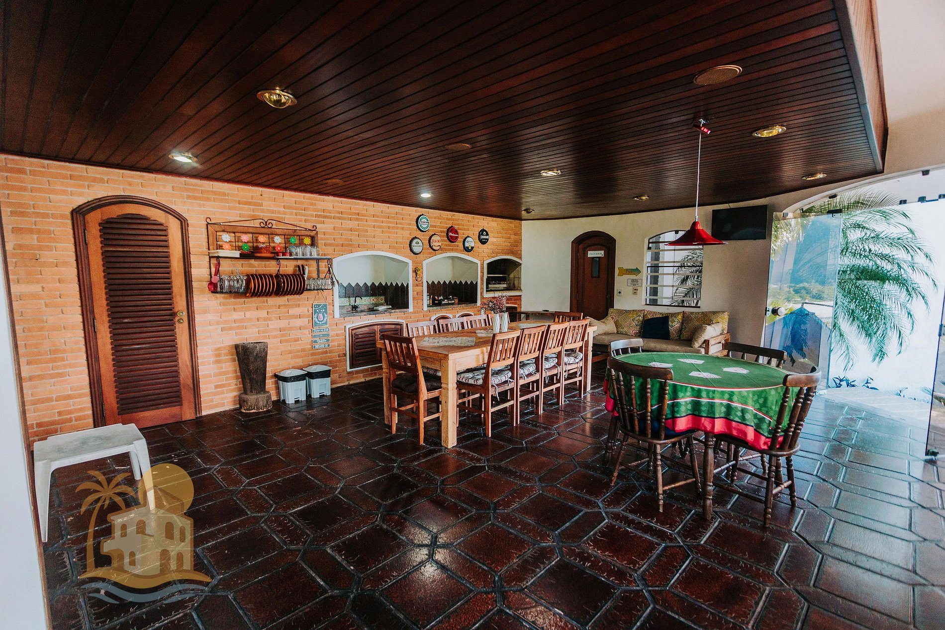Conta com todos os utensílios necessários, além de churrasqueira interna, sauna, hidro, ducha circular, entre outros.