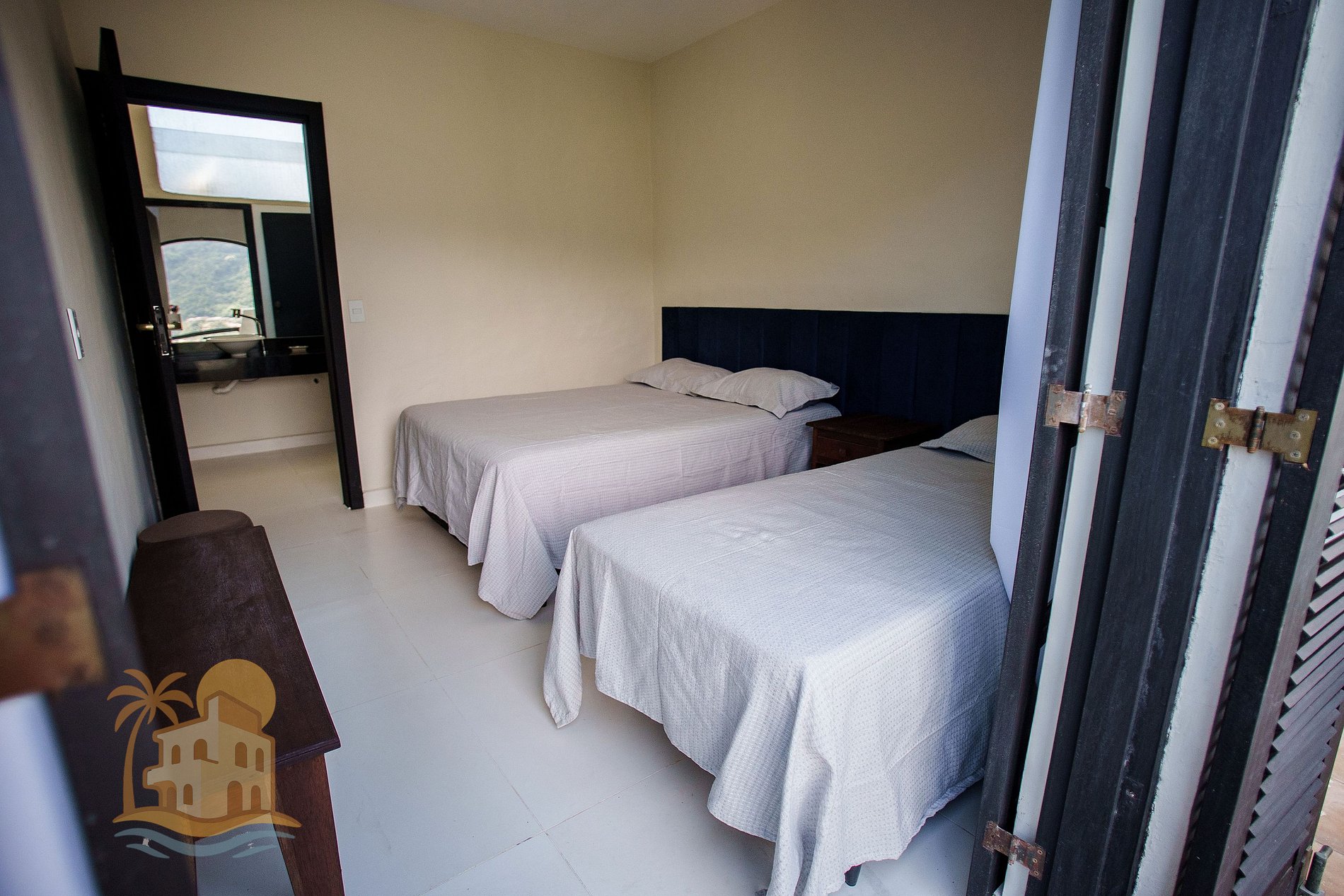 A casa dispõe de travesseiros, cobre leitos e protetores de colchão, porém não e disponibilizada roupa de cama /banho.